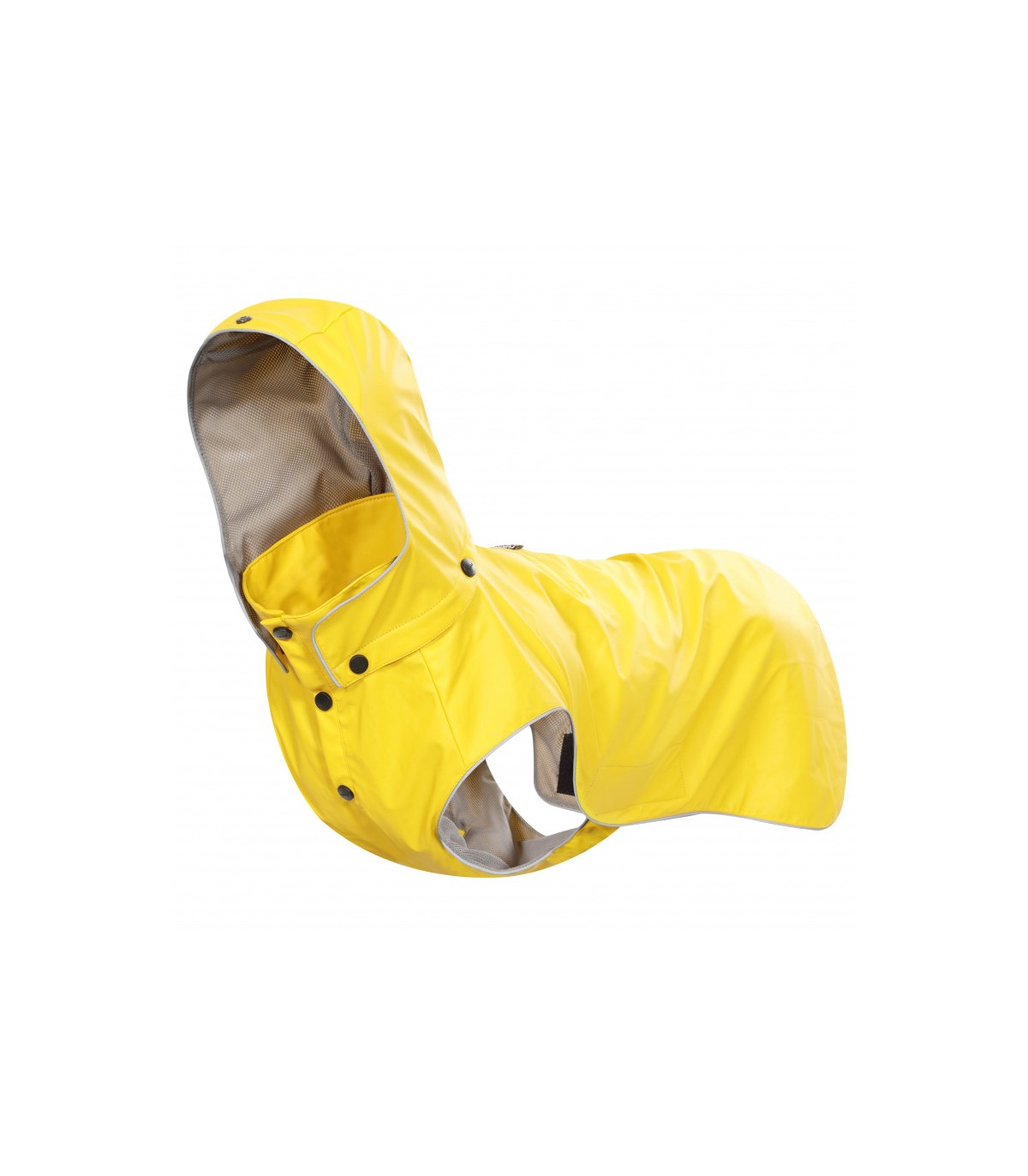 Impermeable para perro. Cuello y zona ventral ajustable. Cuello alto. Con elementos reflectantes. Con malla interior transpirable. Plegado ocupa un espacio muy reducido. Lavable. 100% poliéster.