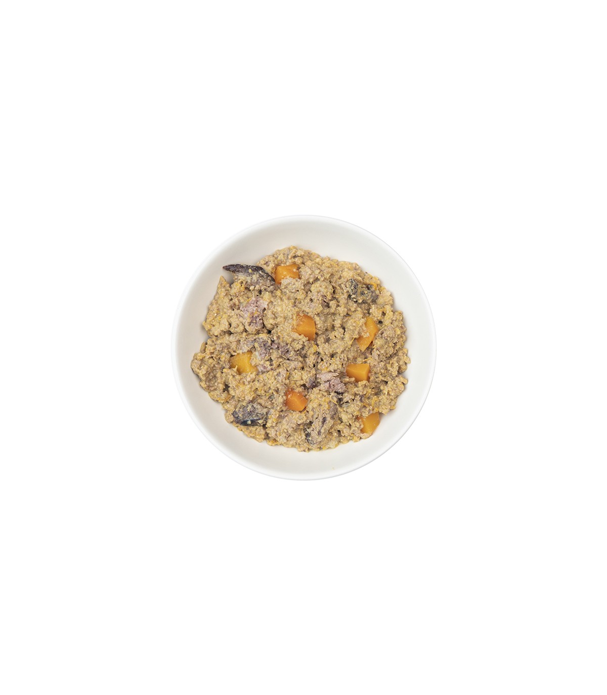 - Cerdo 45% (carne, corazón, hígado), pescado blanco y azul 37,5% (bacalao, salmón), calabaza 17%, aceite (girasol, oliva, salmón, lino), colágeno de cerdo, levadura de cerveza, sustancias minerales.