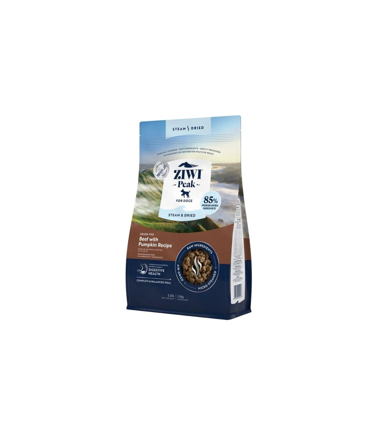 - 83% Carne de res y órganos de res (incluyendo carne de res, pulmón, tripa, hígado, corazón, plasma, bazo, hueso, cartílago), calabaza (1.7% calabaza fresca, 1.3% calabaza seca (equivalente a 13.2% calabaza fresca), lecitina, 2% grasa de res, guisantes verdes secos, lentejas verdes secas, pulpa de manzana seca, quinoa seca, aceite de pescado, nabo, zanahoria, remolachas, minerales, raíz de achicoria seca, alga seca.