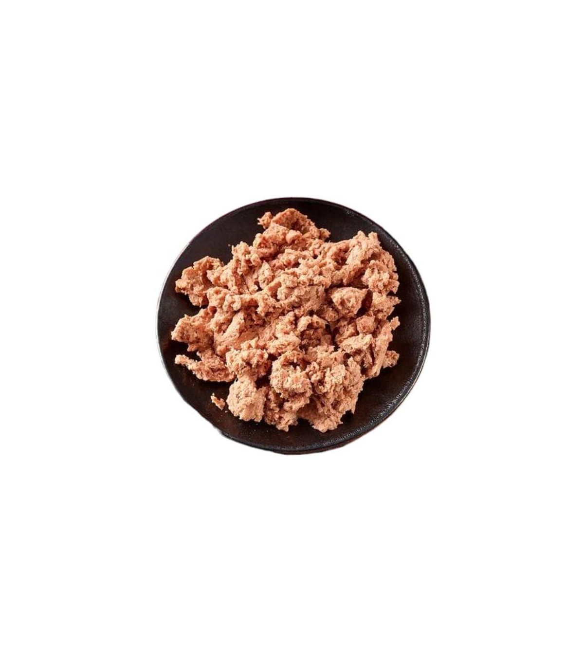 - Ingredientes: 92% pollo y atún ( de los cuales 25% es carne de atún, 19% corazones de pollo, 13% carne de pollo con piel, 14% de cuellos de pollo, 9% de higado de pollo, 5% de mollejas de pollo, 4,5 % sangre de pollo), 5% de calabacín, 1,8% de levadura de cerveza, 0,4% de sal marina, 0,2 % aceite de salmón, 0,15% taurina, tocoferoles naturales (vitamina E).