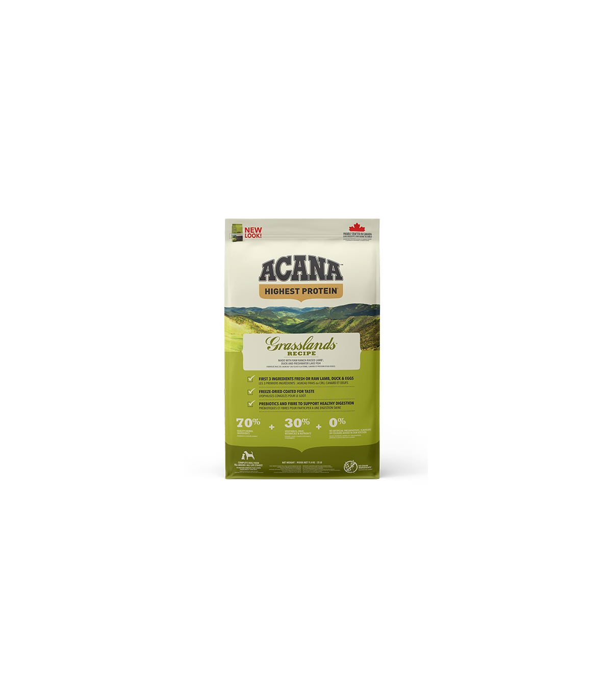- Cordero crudo (8,5%), pato crudo (8,5%), huevos (8%), cordero deshidratado (8%), arenque deshidratado (7%), pavo deshidratado (7%), guisantes verdes enteros, lentejas rojas enteras, garbanzos enteros, pescado crudo de lago de agua dulce (5%), aceite de pescado (4%), hígado de cordero crudo (4%), pato fresco (4%), pavo crudo (4%), lentejas verdes enteras, judías pintas enteras, guisantes amarillos enteros, fibra de lenteja, grasa de pato (2%), almidón de guisantes, algas marinas secas, calabaza