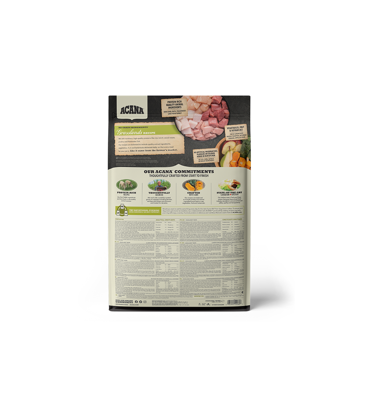 - fresca entera, calabaza butternut entera fresca, zanahorias enteras frescas, manzanas enteras frescas, peras enteras frescas, calabacín entero fresco, raíz de achicoria seca, pato e hígado liofilizados, cordero e hígado liofilizados, col rizada fresca, espinacas frescas, hojas de nabo frescas, hojas de remolacha frescas, arándanos rojos enteros, arándanos azules enteros, bayas de Saskatoon enteras, cúrcuma, cardo lechoso, raíz de bardana, lavanda, raíz de malvavisco, escaramujos. *mezcla variada de