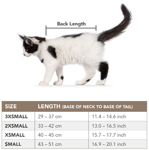 - Consulte a su veterinario cuando desee utilizar el Recovery Suit con fines médicos. Compruebe que el ajuste del Recovery Suit no esté demasiado apretado. Consulte a su veterinario si el comportamiento de su gato está cambiando o si tiene hábitos excesivos de lamer/masticar.