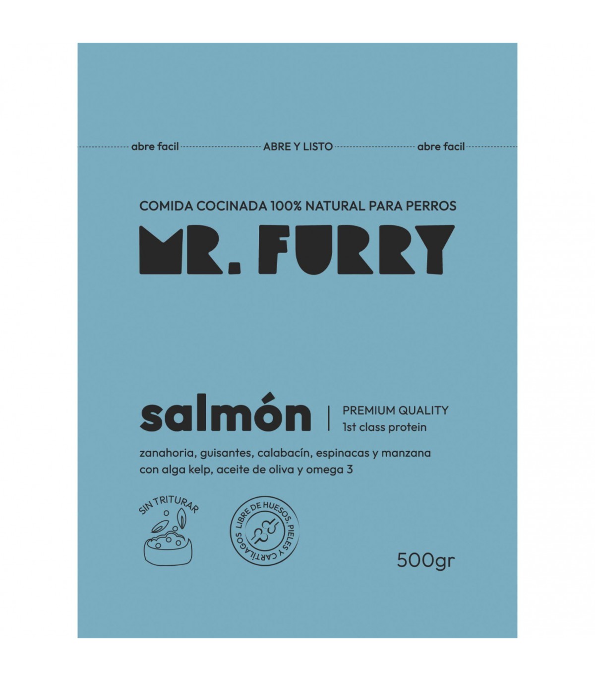 - Ingredientes: Pescado 64% (Salmón 33%, Tilapia 25%, hígado rape 6%), Verduras y legumbres 27% (zanahoria 15%, calabacín 8%, guisantes 4%),